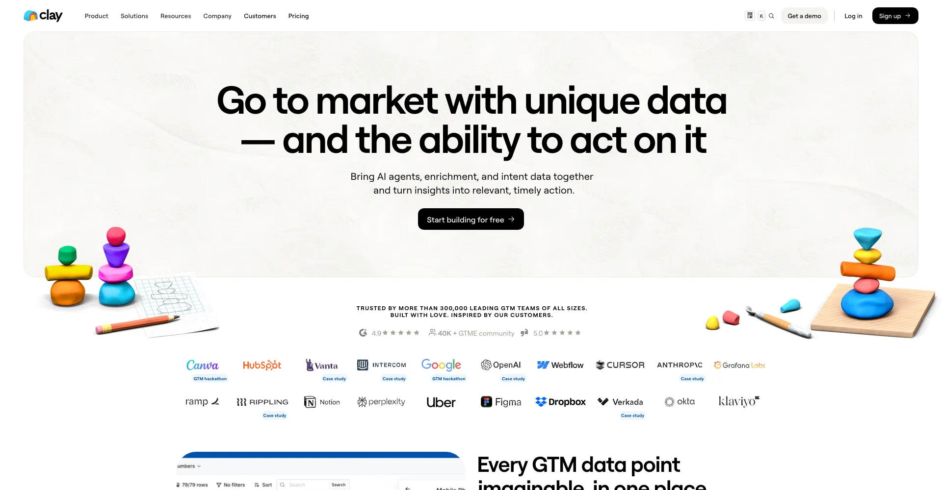 Clay is a powerful B2B data enrichment platform that combines 100+ data providers into a single marketplace. The tool enables GTM teams to automate prospecting, lead enrichment, and outbound campaign personalization.