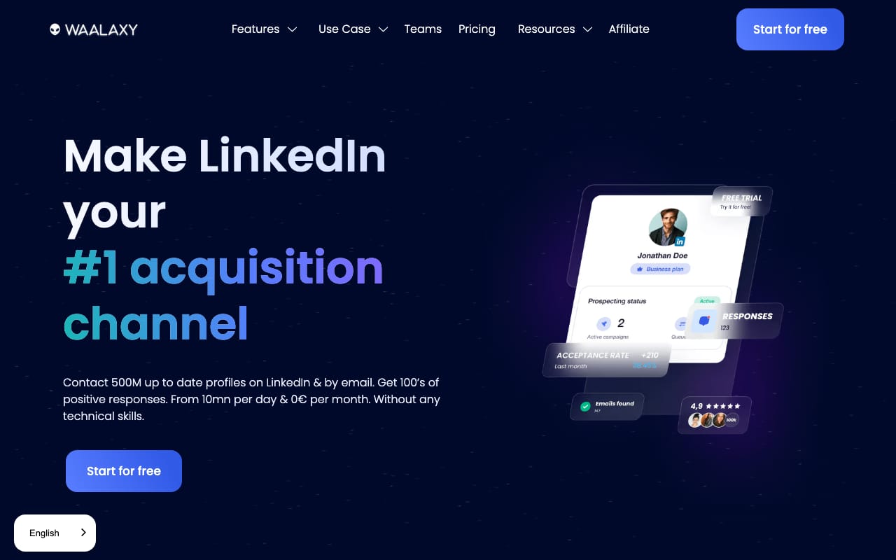 Waalaxy (formerly ProspectIn) offers a browser-based solution combining LinkedIn automation with cold email outreach. The French-built tool emphasizes ease of use.
