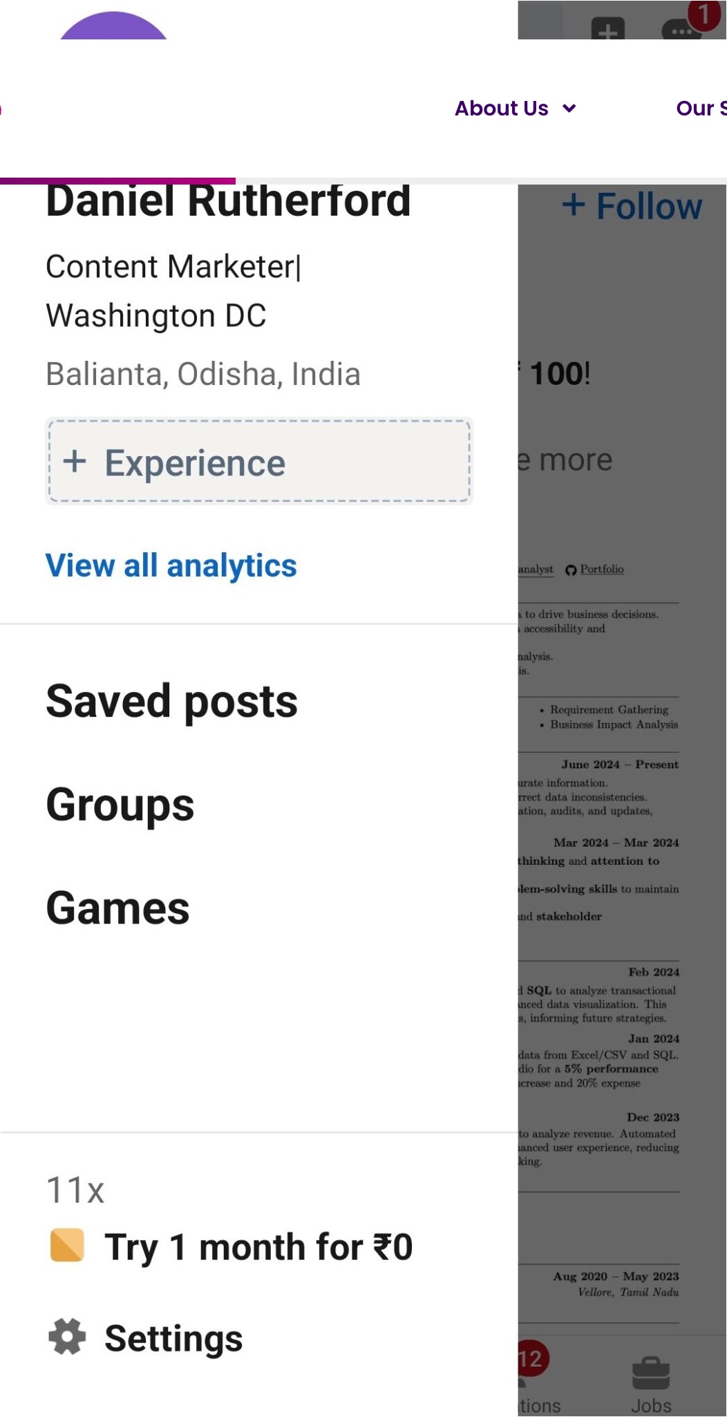 Open the LinkedIn app and tap your profile picture in the top-left corner to open the menu.