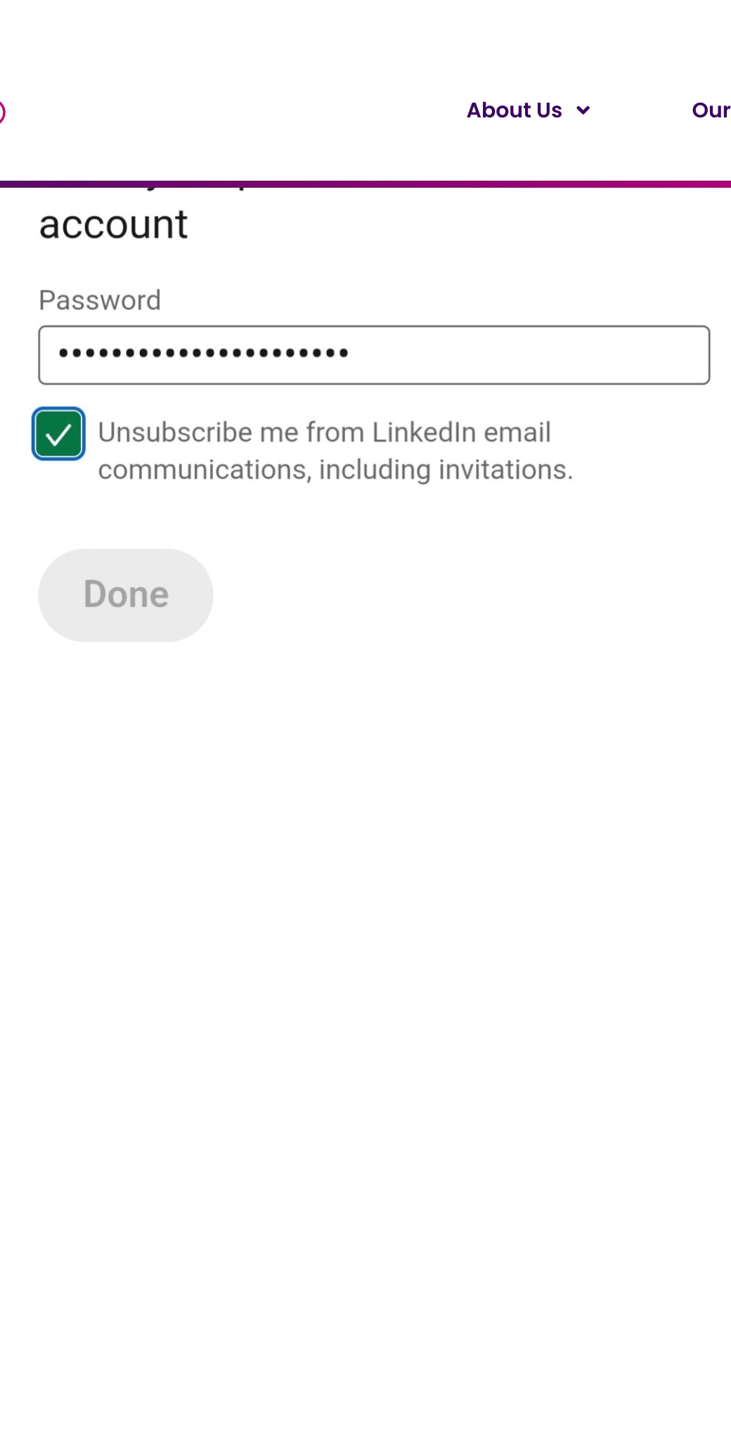 Enter your LinkedIn password when prompted and tap "Done" to finalize the deletion.