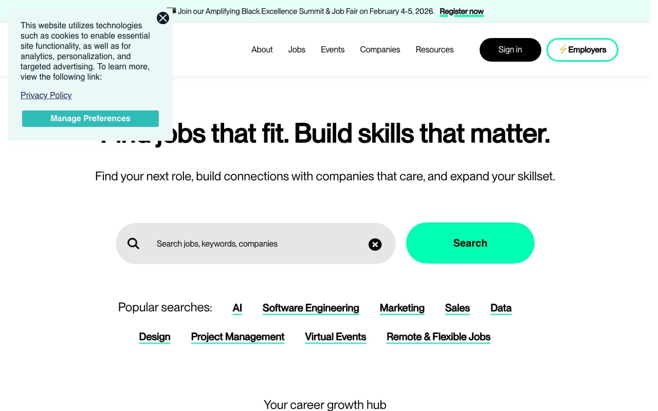 Best For: Diversity-focused | Pricing: Free for job seekers