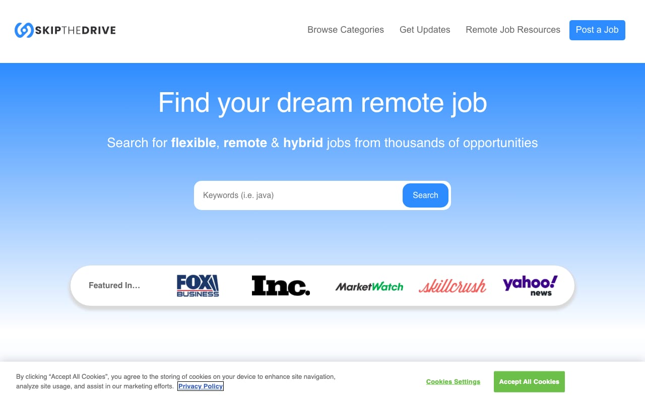 Created by the same founder as FlexJobs, Remote.co focuses exclusively on 100% remote positions—no hybrid roles. The site features company profiles highlighting remote work culture, Q&As with remote workers, and resources for transitioning to remote work. Quality over quantity, with curated listings from established remote-first companies.