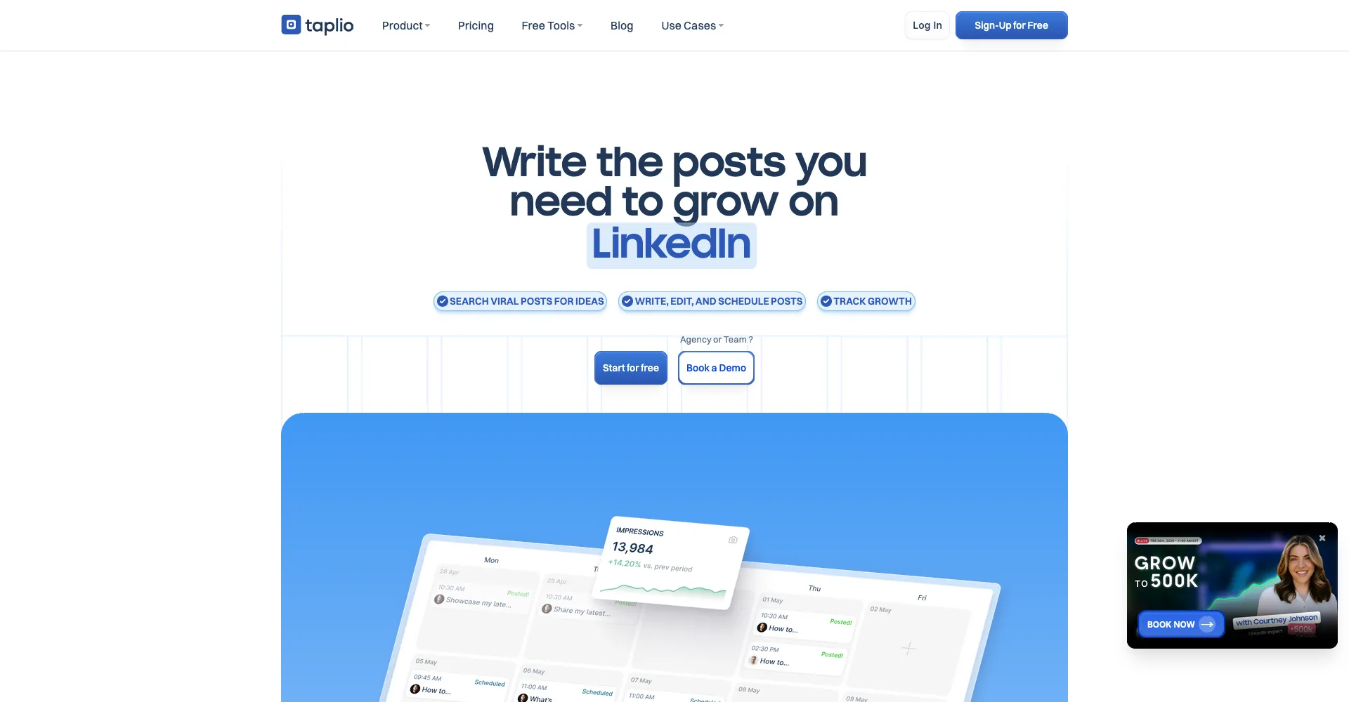 According to Taplio's official site, the platform combines AI-powered content creation, scheduling, analytics, and engagement tools specifically built for LinkedIn.